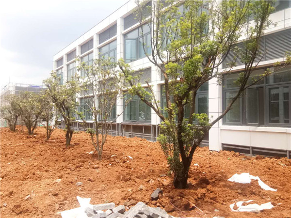 贵州义龙新区办公楼钢构及内外装饰工程进入园区绿化种植阶段
