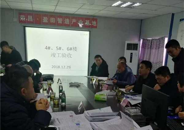 2018年12月29日,由我司承建的盈田荣昌标准厂房项目4#、5#、6#楼顺利通过了竣工验收,参加验收的有施工总承包单位、监理、设计院、勘测单位及业主方,质监站对本次会议高度重视,派验收小组全程监督本次验收。会议由监理单位主持。我司及施工总承包单位及监理单位首先汇报各自的质量评定报告,评定结果均为合格。