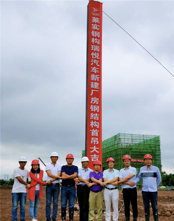 莱实钢构瑞悦汽车新建厂房项目首吊成功!