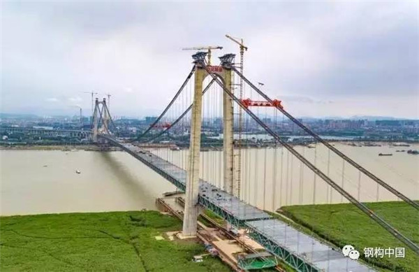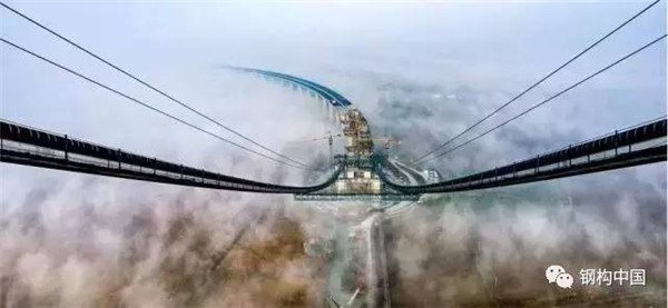 “悬索桥主缆是整座桥的主要承重结构,将担负起成桥后所有的自重及行车荷载等重量。”湖南交通水利建设集团董事长方联民介绍,两根主缆设计拉力达8万吨,直径为886毫米,单根主缆由175根长达2600米的索股组成,每根索股由127根直径5.35毫米的高强镀锌钢丝组成,设计使用寿命达120年。(来源:中新网)