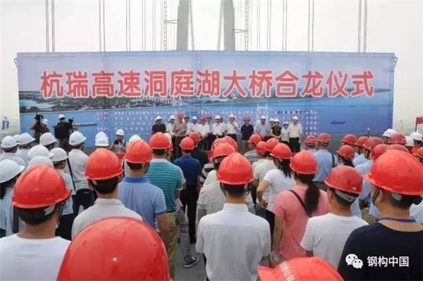 随着最后一节加劲钢桁梁吊装就位,国家主干线杭(州)瑞(丽)高速公路关键控制性工程——大岳高速洞庭湖大桥15日顺利完成合龙。大桥预计2018年春节前建成通车,横贯东西、长达3400余公里的杭瑞高速公路全线通车在望。