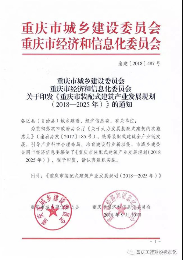 重庆市装配式建筑产业发展规划(2018-2025)