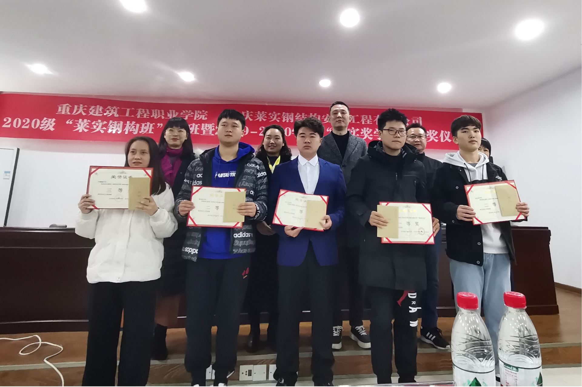 此次奖学金颁奖仪式主要是对重庆建筑工程职业学院18届和19届两届校企合作班级的优秀学生进行表彰和奖励,设立一等奖2名,二等奖2名,三等奖1名。“感谢重庆莱实建筑工程集团为我们提供的奖学金,也感谢学校为我们提供了优越的学习环境。”重庆建筑工程职业学院“莱实钢构班”的涂金璋是二等奖学金的获得者,在今后的学习过程中,他将做到勤学苦读,戒骄戒躁,开拓进取,展示“莱实钢构班”的风采。