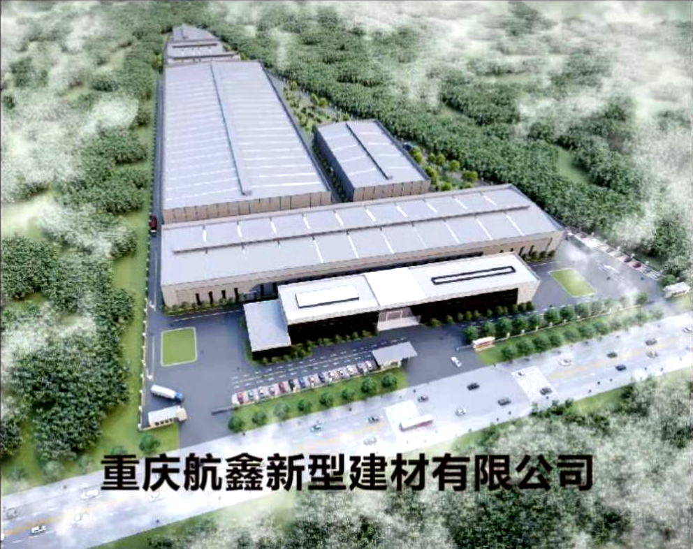 重庆航鑫新型建材有限公司生产基地项目是我司进行工业总承包承建,项目位于大足区,占地面积约150亩,建筑面积约60000余平方米。 主要建设年产5万吨各种铝单板幕墙型材生产线及相关生产车间、原料库、办公楼等各种设施。