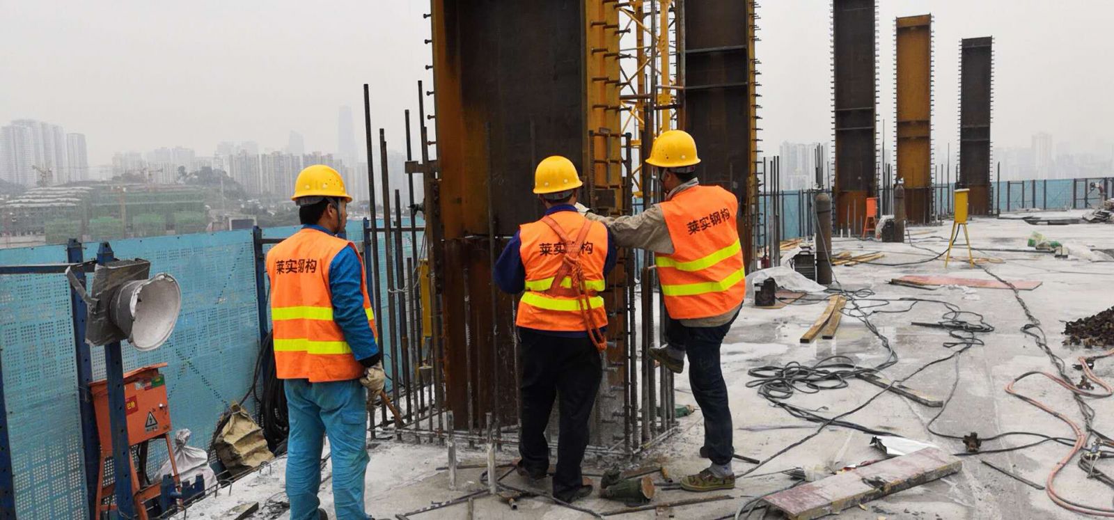 重庆新天地-作为重庆未来的CBD,拥有集商务、购物、餐饮、娱乐于一体的大体量综合商业中心已初具规模。由重庆莱实钢构集团承建的钢结构工程施工进展顺利。