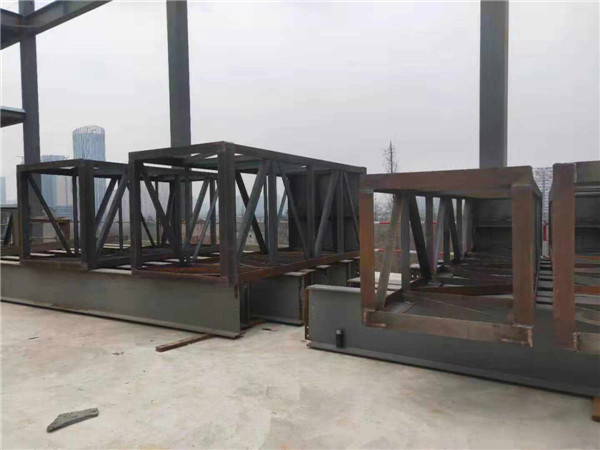 重庆莱实钢构锦官府工程的大箱梁安装,跨度24米,重量25T,属于钢结构吊装重难点,经项目管理部讨论和查勘现场,预先确定方案为500T吊车的吊装方案。后经反复推敲讨论,现场不具备吊车进场条件,且起吊高度较大,危险性增加,因此改用胎架、龙门架吊装,并验算荷载,降低了危险性,节约了成本,提高了吊装效率。