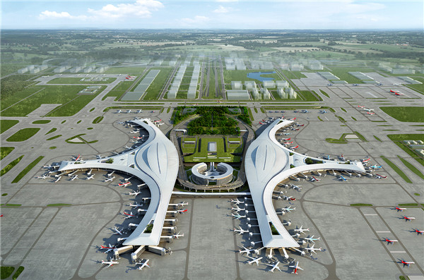 成都天府国际机场位于天府新区简阳芦葭镇附近,航站楼面积 126万平方米,投资规模 693亿元。机场一期工程按满足2025年机场旅客吞吐量4000万人次、货邮吞吐量70万吨、飞机起降量32万架次的目标设计,新建三条跑道。机场建成后,成都将成为继北京、上海之后,国内第三个拥有双机场的城市。也将成为中国中西部首个国家级航空枢纽。
