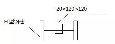为保证钢柱准确、牢固地放在基础中的预埋φ30“中筋”上,在H型钢柱底部焊接增加一块厚度20的钢板,如下图。