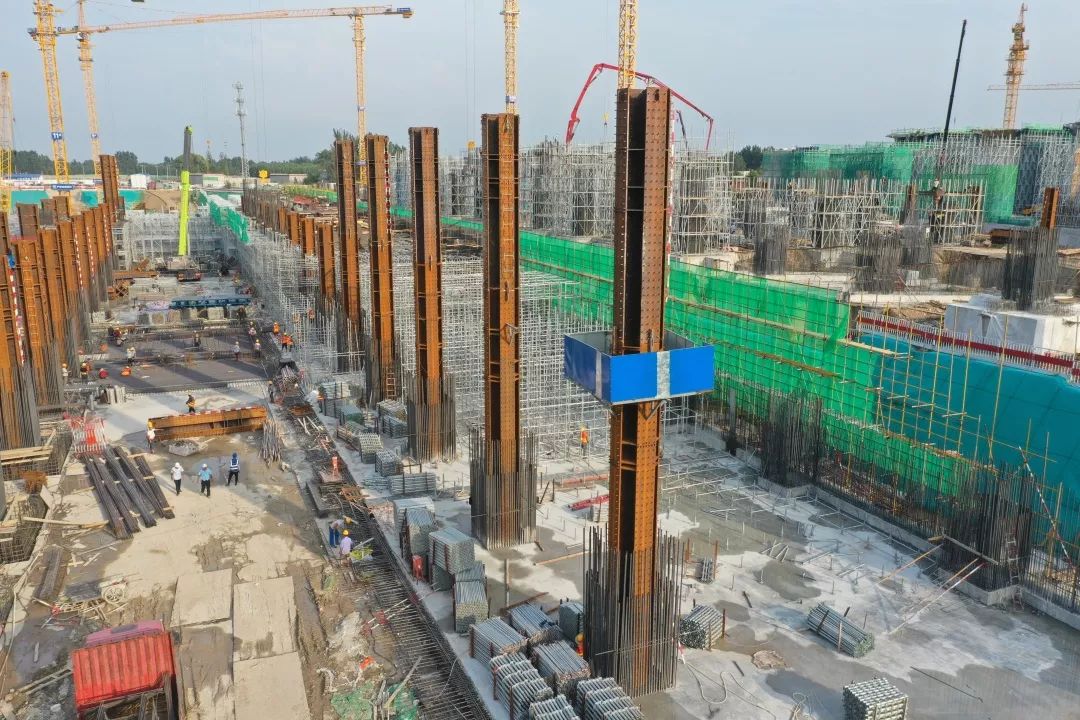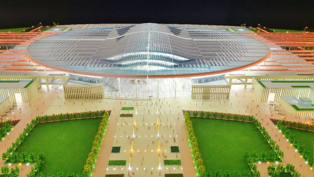 新建北京至雄安城际铁路项目是雄安新区首个重大交通项目。其中,新建北京至雄安城际铁路雄安站站房位于雄县城区东北部,总建筑面积约13.8万平方米,站场总规模为11台19线。工程主体共5层,其中地上3层,地下2层,局部设夹层,包含高架候车厅、站台层、地面候车厅、商业开发区域以及城轨M1线规划预留空间,总用钢量13.1万吨。