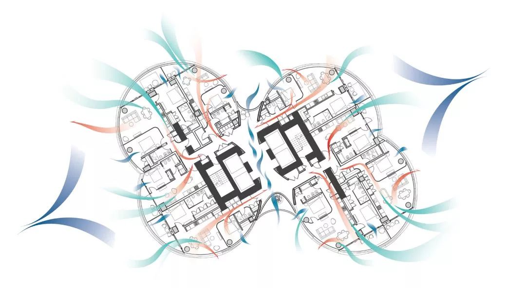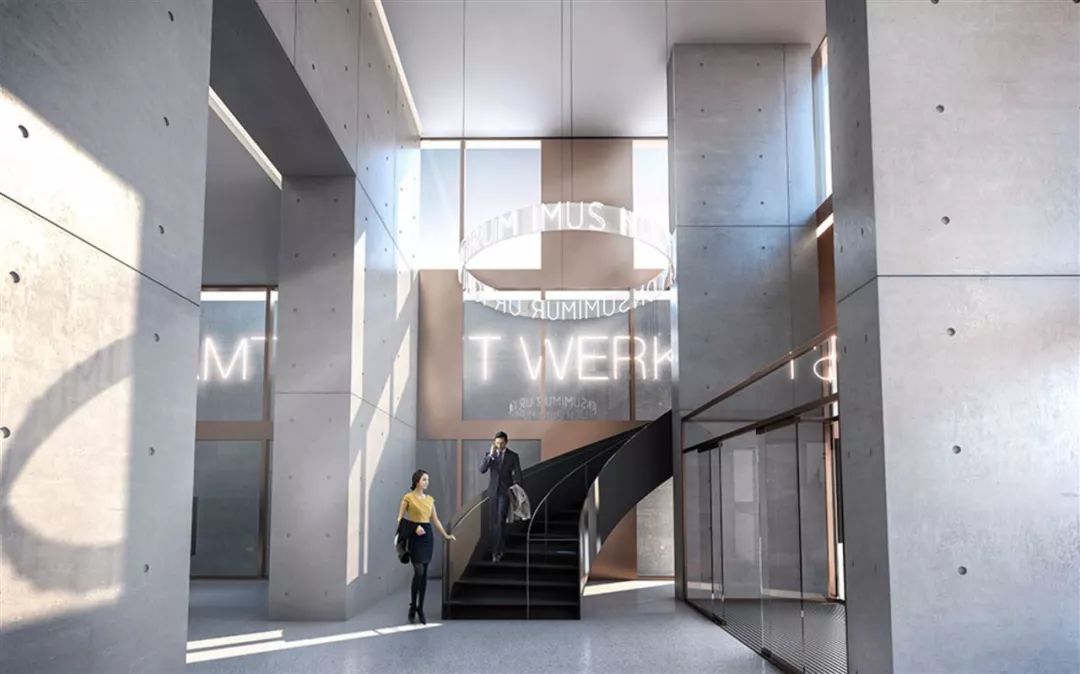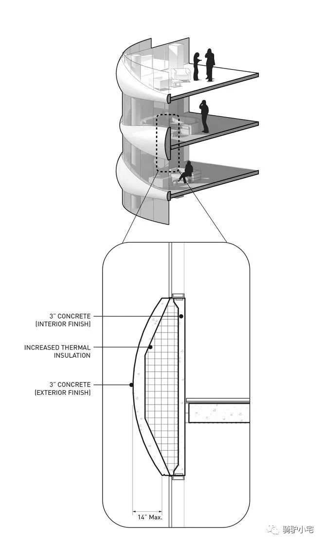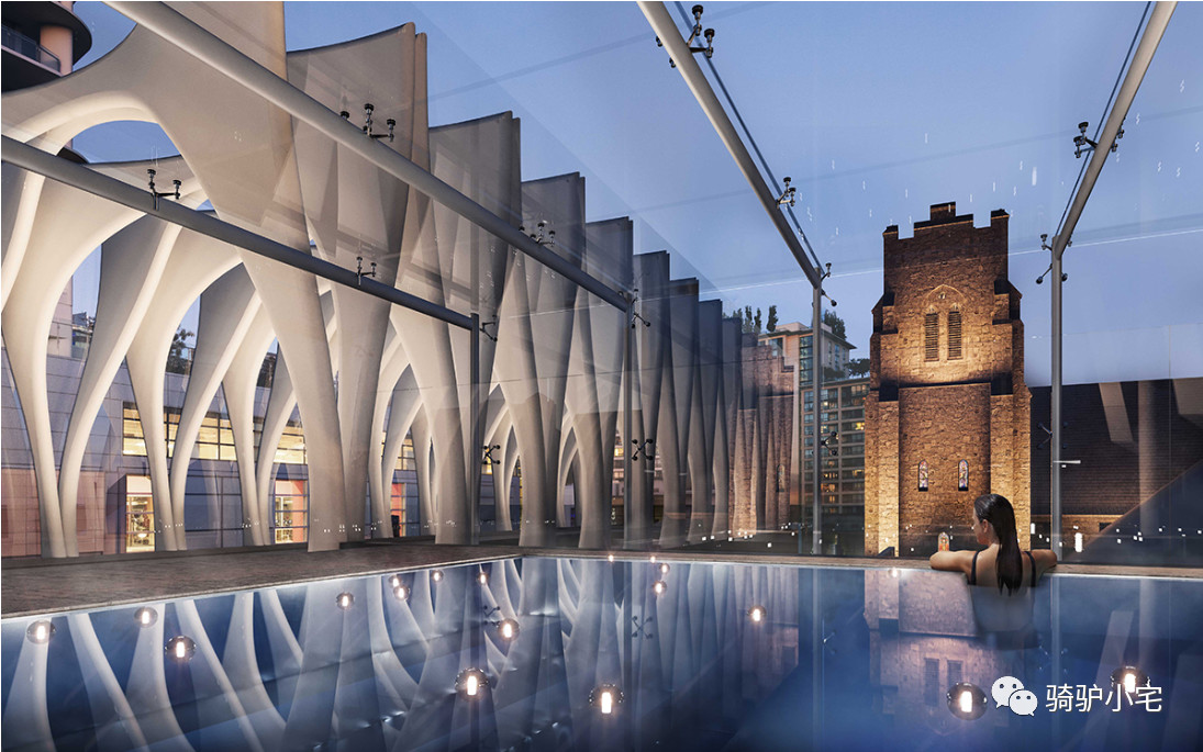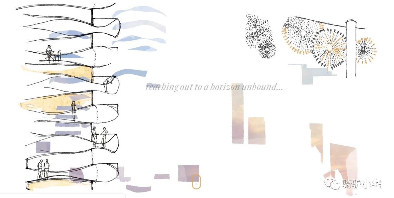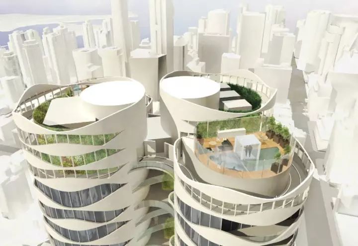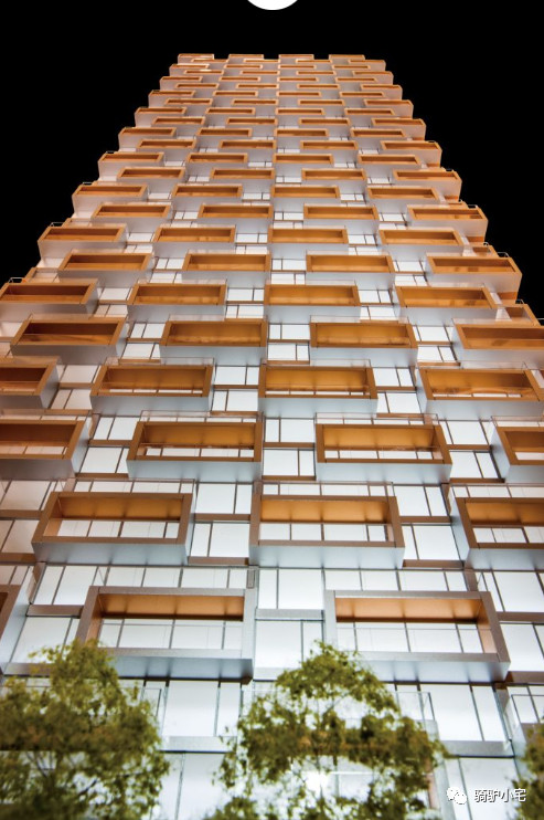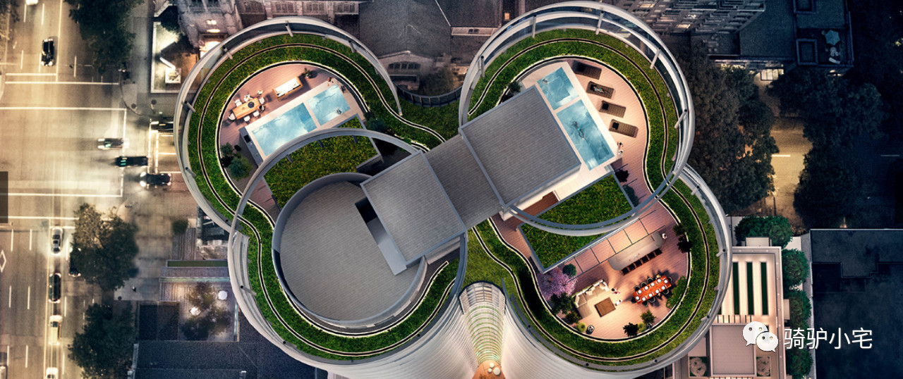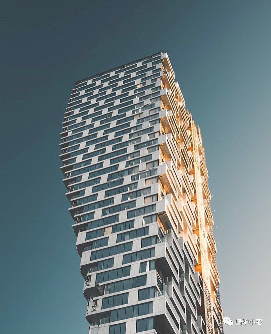 大楼延伸到空中的部分进行了大胆的扭曲变形