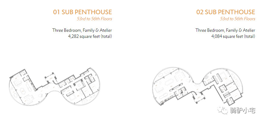 53-56层,四梯两户,2个天际豪宅户型379-397㎡