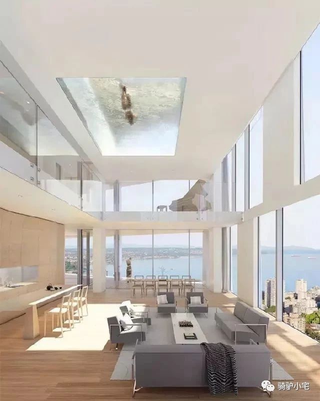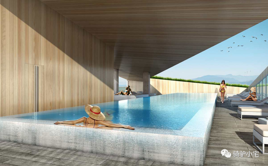 可俯瞰英吉利湾的顶层天际豪宅露台与泳池▽