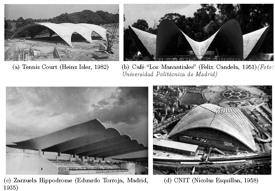 说网壳结构,就得从混凝土薄壳开始说起。在20世纪中叶,混凝土薄壳蓬勃发展。EduardoTorroja,Felix Candela,Nicolas Esquillan,Heinz Isler等在世界各地都实践了很多混凝土薄壳作品。他们的壳体纤薄明快,放到现在看也都是建筑与结构融合的精品。