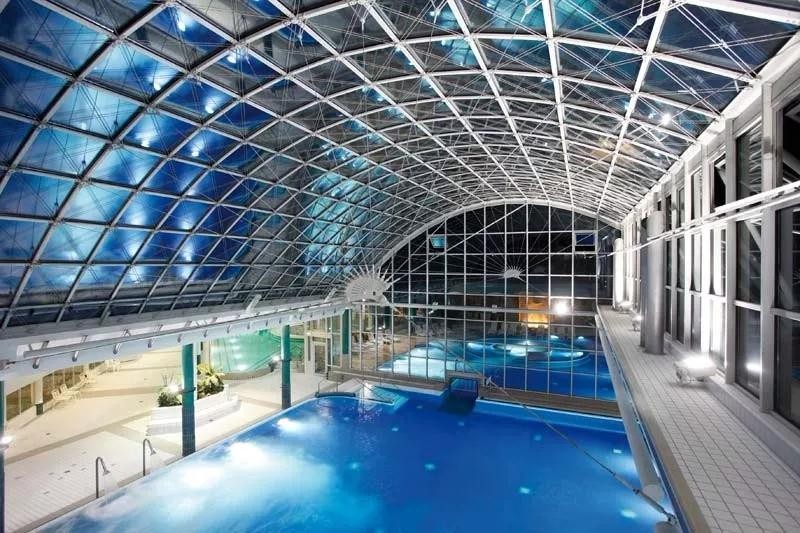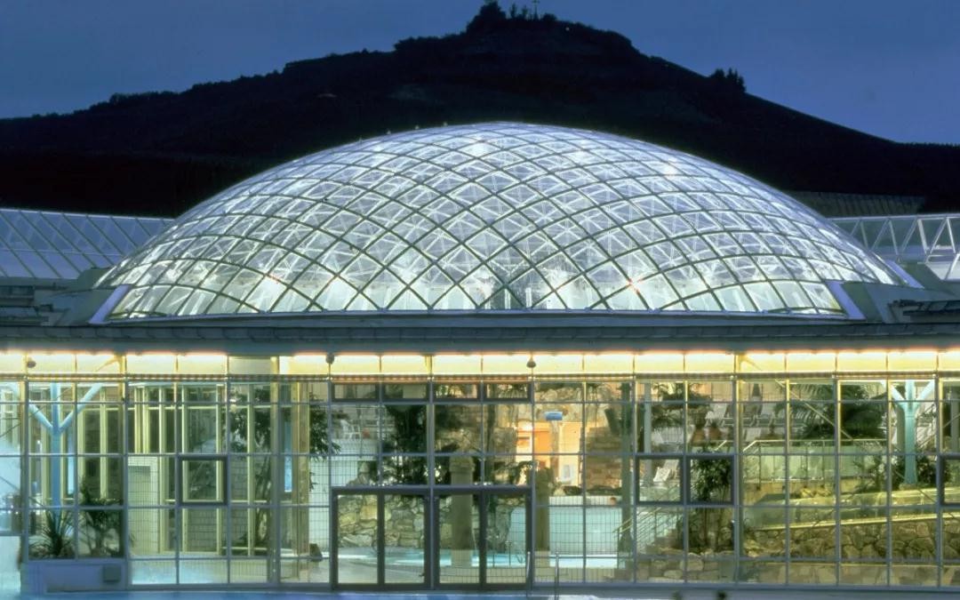 三角形网格固然稳定,但是不够通透不够轻。而施莱希想做四边形网格。第一个机会是在Neckarsulm游泳馆。建筑师希望游泳馆的顶盖是球体的一部分。