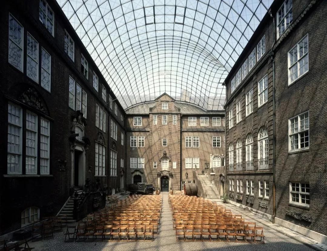▲Steel gridshell over the courtyard of theNational Maritime Museum, Amsterdam, 2011