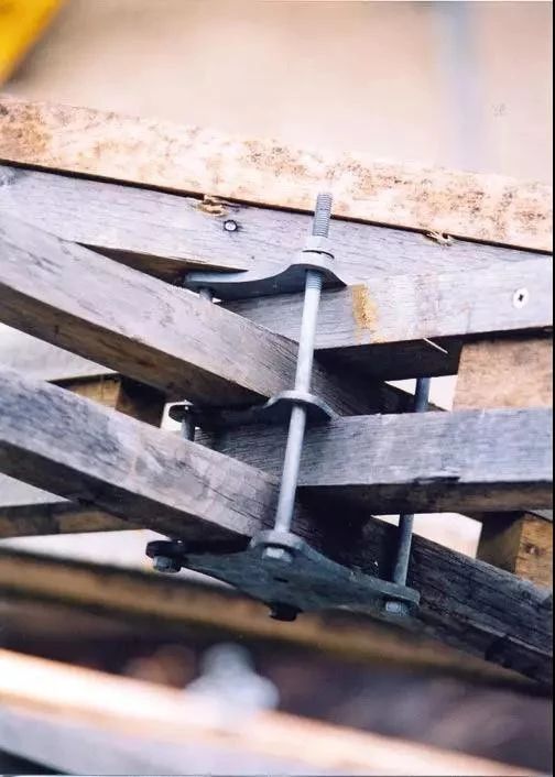 工程师设计了一种用金属丝绑扎的方式。这种连接方式使构件都能贯通,大大简化节点构造、节省了组装成本。